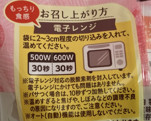 パッケージの裏面には、電子レンジを使った温め方が書いてあります。