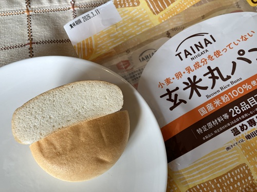 玄米丸パンは、もっちりとした食感が印象的です。味わいはとてもシンプルで、お米の風味は感じさせない仕上がりです。