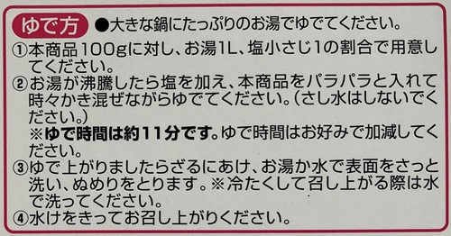 パッケージの裏面には、調理方法が丁寧に書いてあったので、このとおりにゆでてみました。