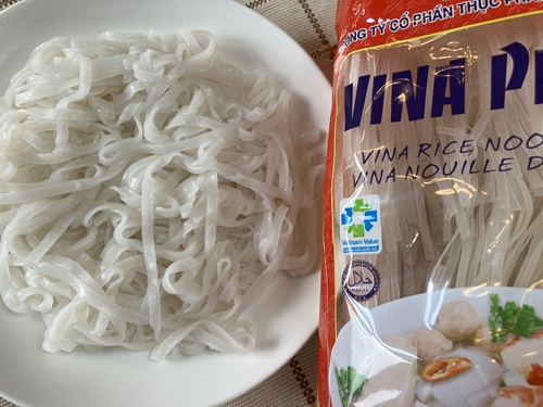 他に代用できる麺はないかと店内を探してみると、乾物コーナーにライスヌードルという麺を見つけました。