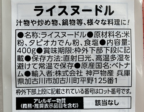 まずは業務スーパーで販売している、麺(ライスヌードル)について商品データから紹介するぞ!