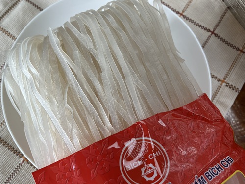 こちらが、袋を開けて麺を出したところです。色がお米の色なので、見た目は完全にベトナムのフォーです。