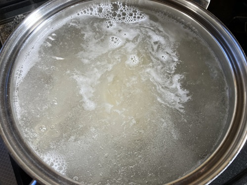 パッケージの裏面には、調理方法が図入りで書いてあったので、このとおりにゆでてみました。