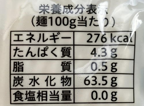 | 栄養成分表示 (100g当たり) | エネルギー:276kcal タンパク質:4.3g 脂質:0.5g 炭水化物:63.5g 食塩相当量:0.0g |